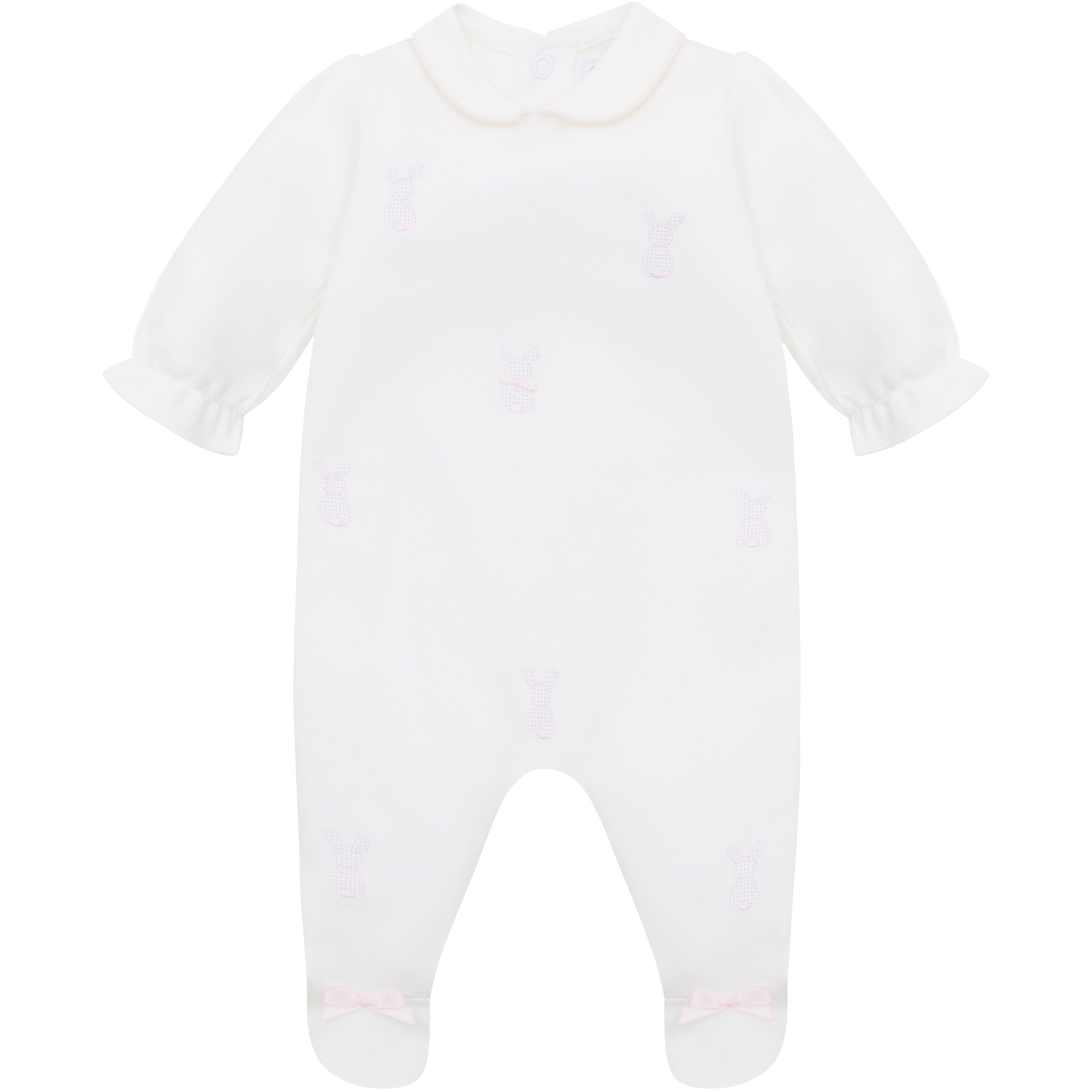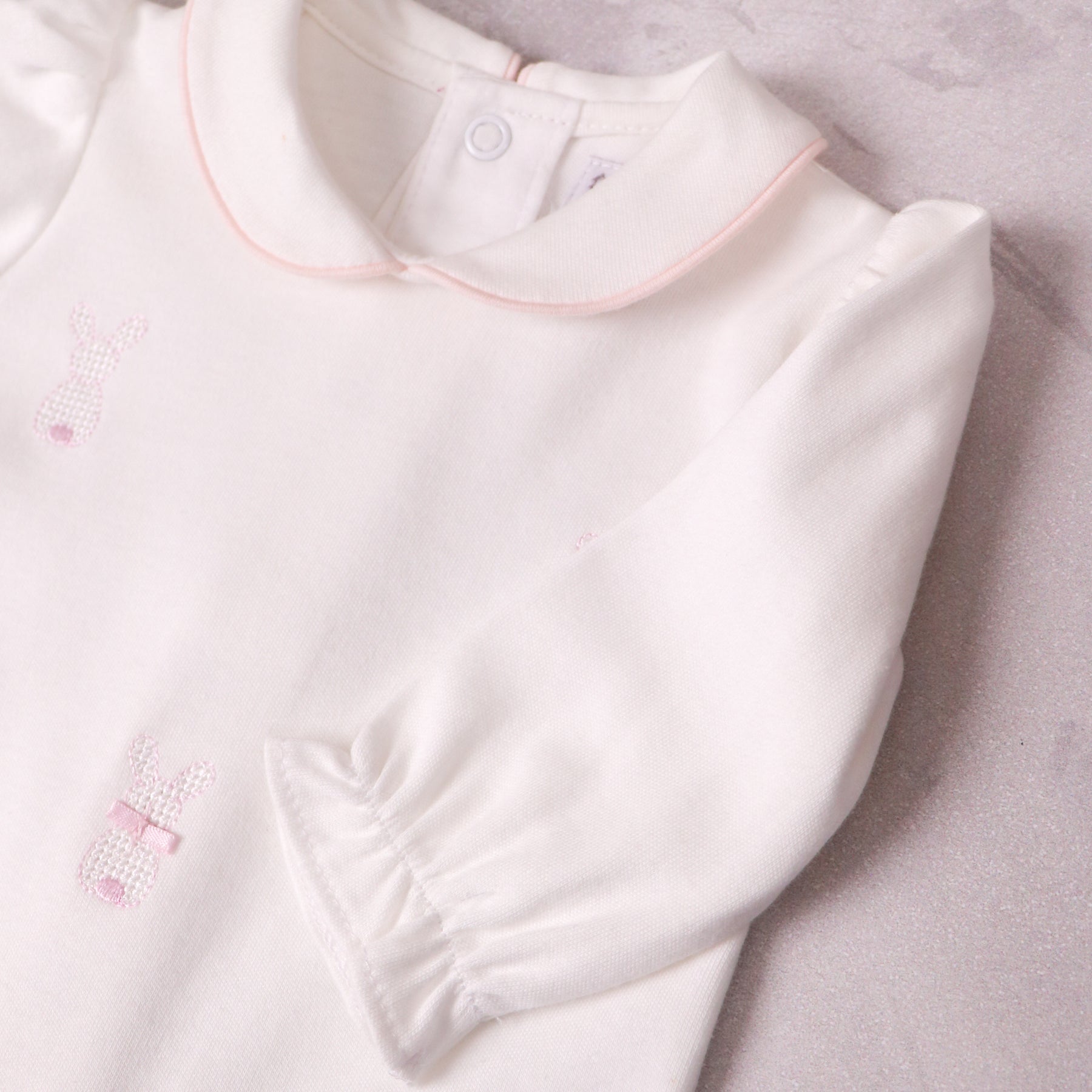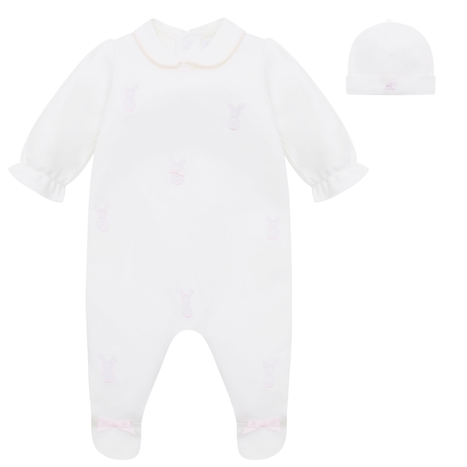 Lucy Girls White Bunny Embroidery Babygrow & Hat
