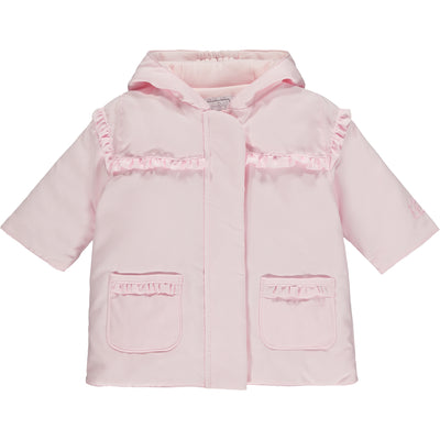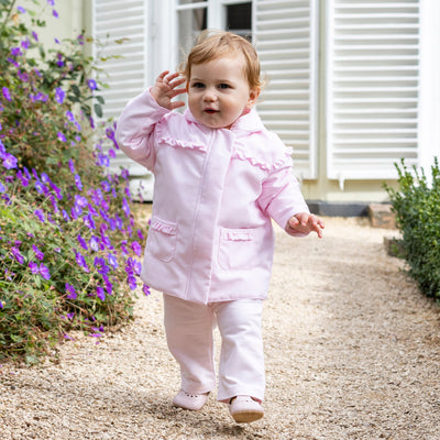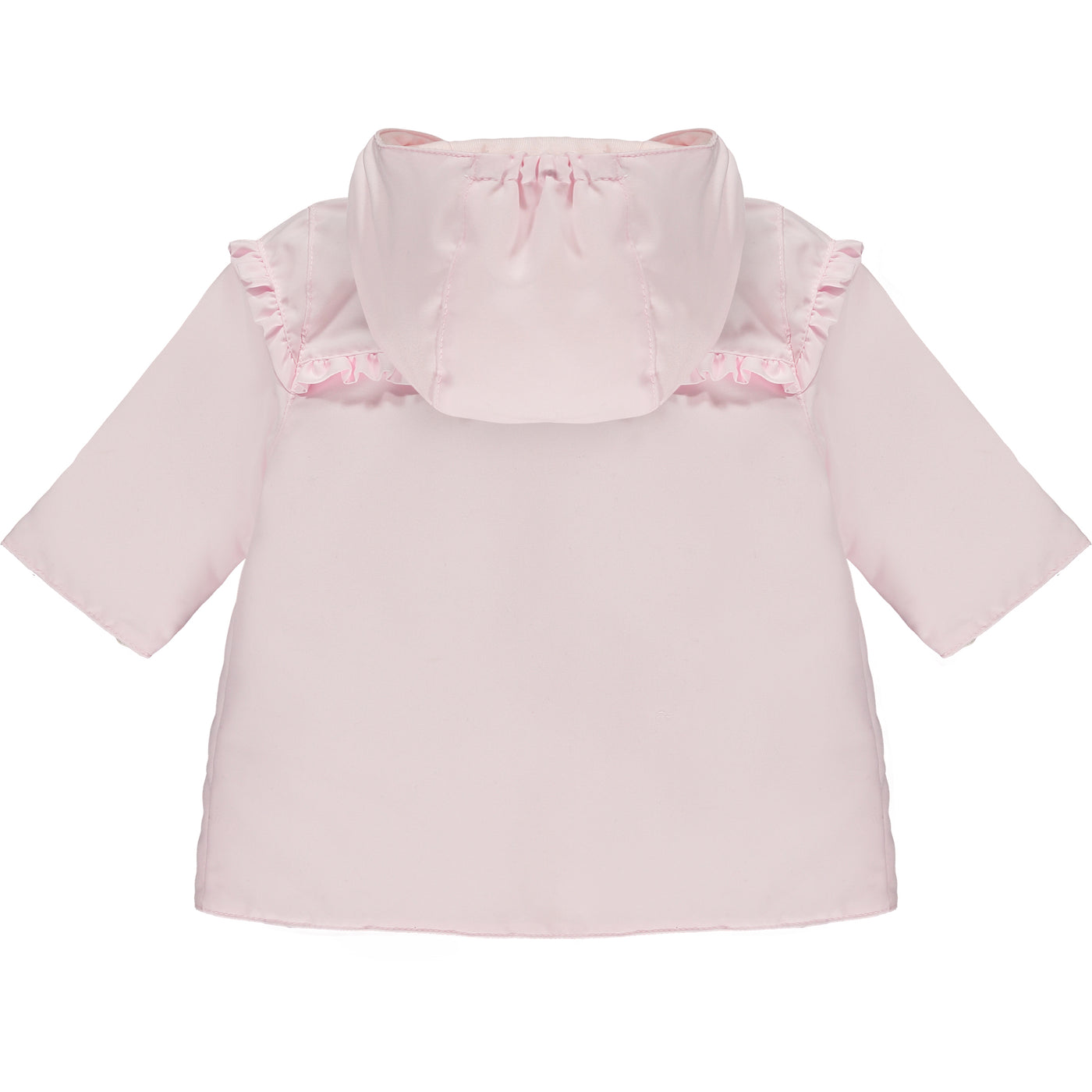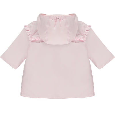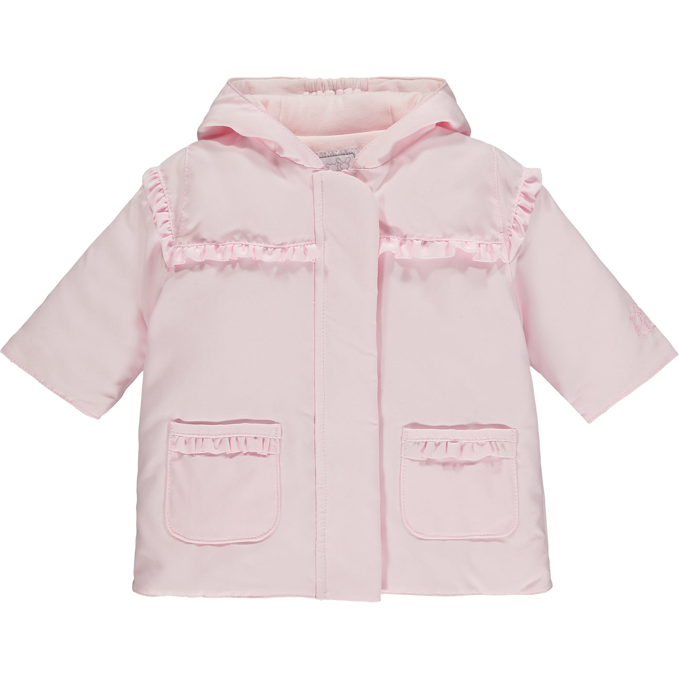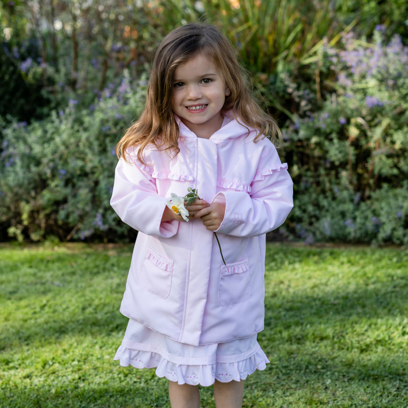 Unsere neue Jacke Bea passt zu jedem rosa Emile et Rose-Outfit. Die wasserabweisende Außenhülle ist mit weichem Baumwolljersey gefüttert und an der Vorderseite befindet sich ein durchgehender Reißverschluss. Eine wunderschöne Rüsche verläuft von jedem Ärmel über die Brust. Zwei Rüschentaschen zieren die Vorderseite. Perfekt, um einen regnerischen Tag aufzuhellen!