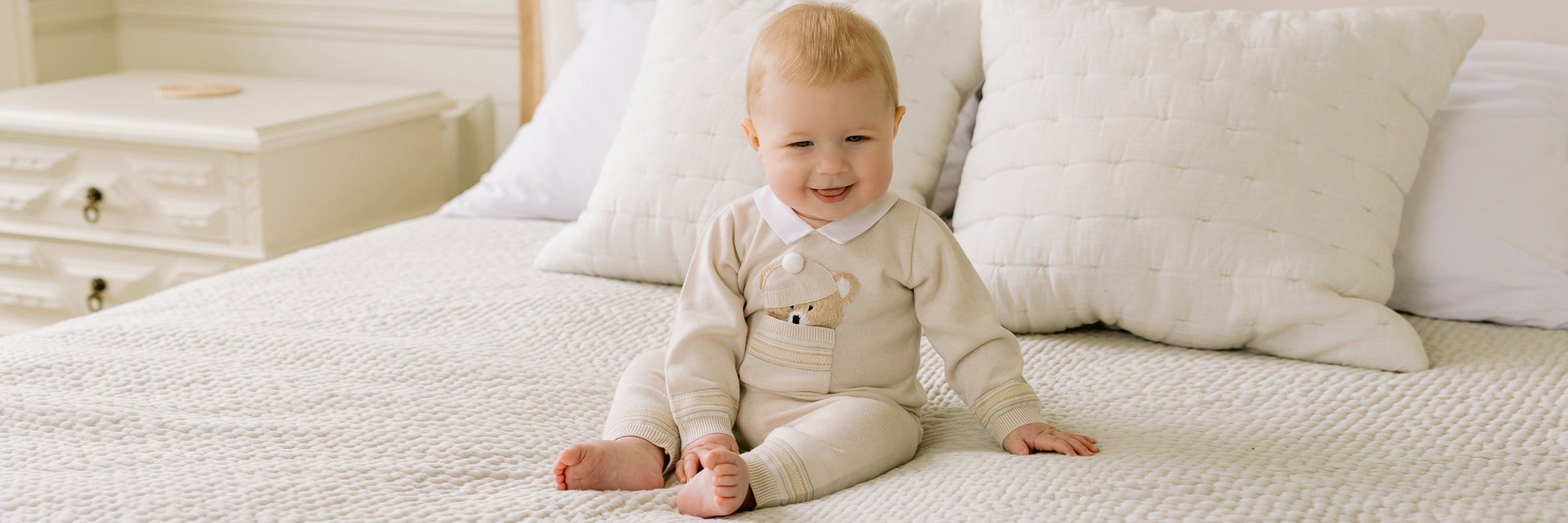 Say hello to the cutest characters from Emile et Rose. Shop our range of bear and bunny baby clothes, including all over knitwear designs and adorable outerwear with cute bear faces and bunny ears incorporated into practical designs.