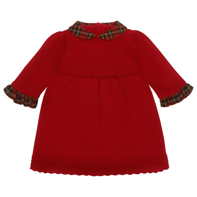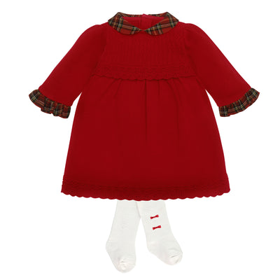 Kesia Girls Red Tartan Detail Knitted Dress with Tights