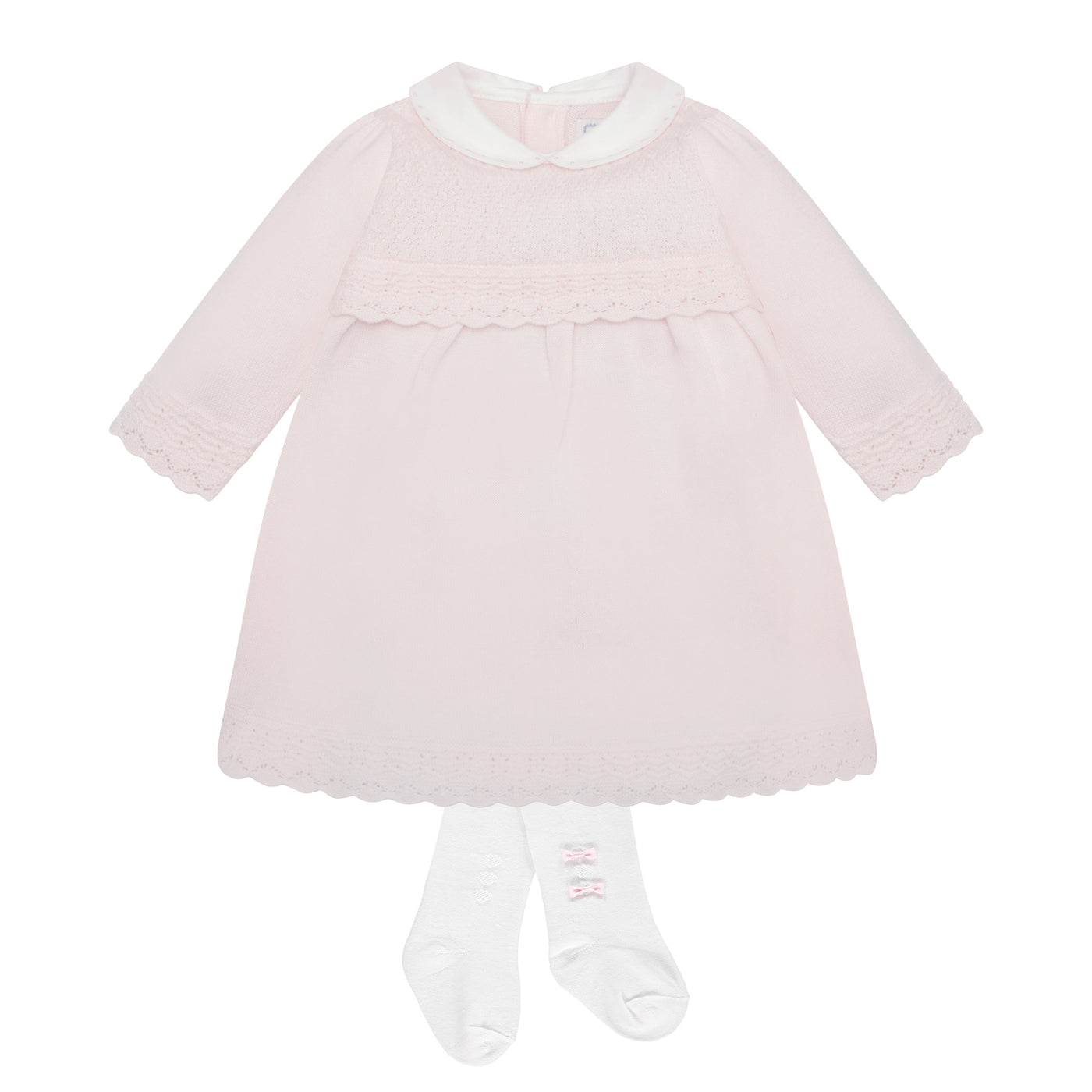 Kristina Pink Cotton Knitted Dress with Bow Tights